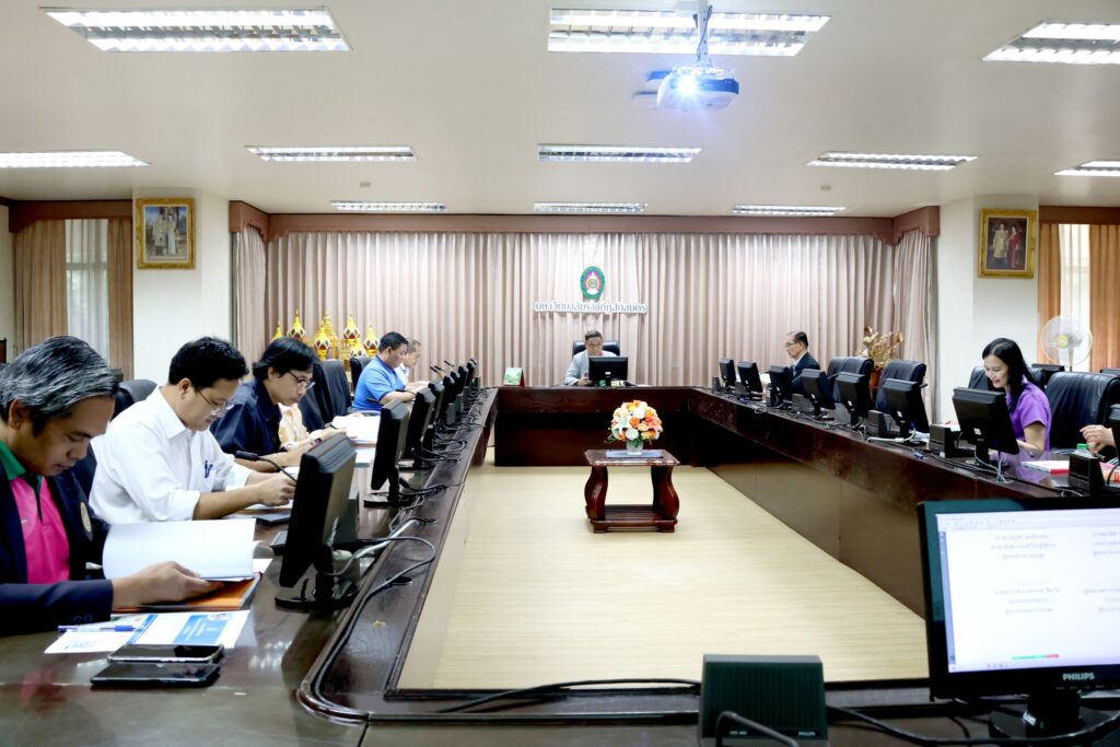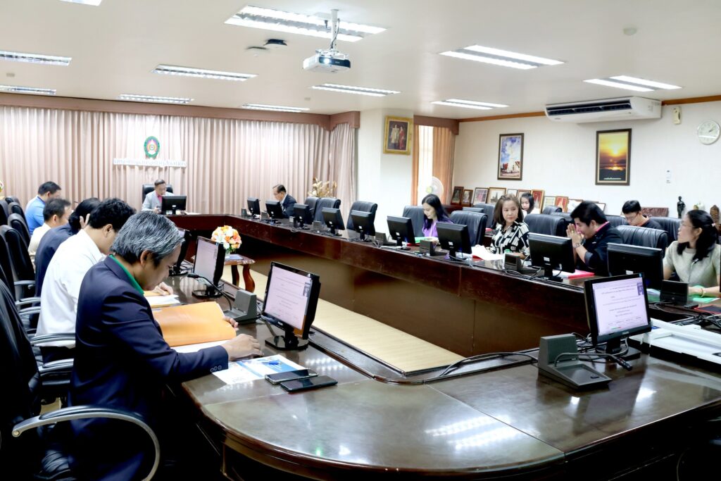 วันอังคารที่ 23 กันยายน พ.ศ. 2568 เวลา 14.00 น. กองนโยบายและแผน จัดประชุมคณะกรรมการบริหารงบประมาณและการเงิน ครั้งที่ 4/2568 ผ่านสื่ออิเล็กทรอนิกส์ ระบบ Zoom Meeting ณ ห้องประชุมสรัสจันทร ชั้น 2 อาคาร 10 มหาวิทยาลัยราชภัฏสกลนคร โดย ผู้ช่วยศาสตราจารย์ชาคริต ชาญชิตปรีชา อธิการบดีมหาวิทยาลัยราชภัฏสกลนคร เป็นประธานการประชุม พร้อมแจ้งวาระเพื่อทราบ โดยมี วาระเรื่องเสนอเพื่อทราบ จำนวน 1 วาระ วาระเรื่องเสนอเพื่อพิจารณา จำนวน 6 วาระ นำเสนอโดย นางอมรรัตน์ ตุ่นกลิ่น รักษาการในตำแหน่งผู้อำนวยการกองนโยบายและแผน
