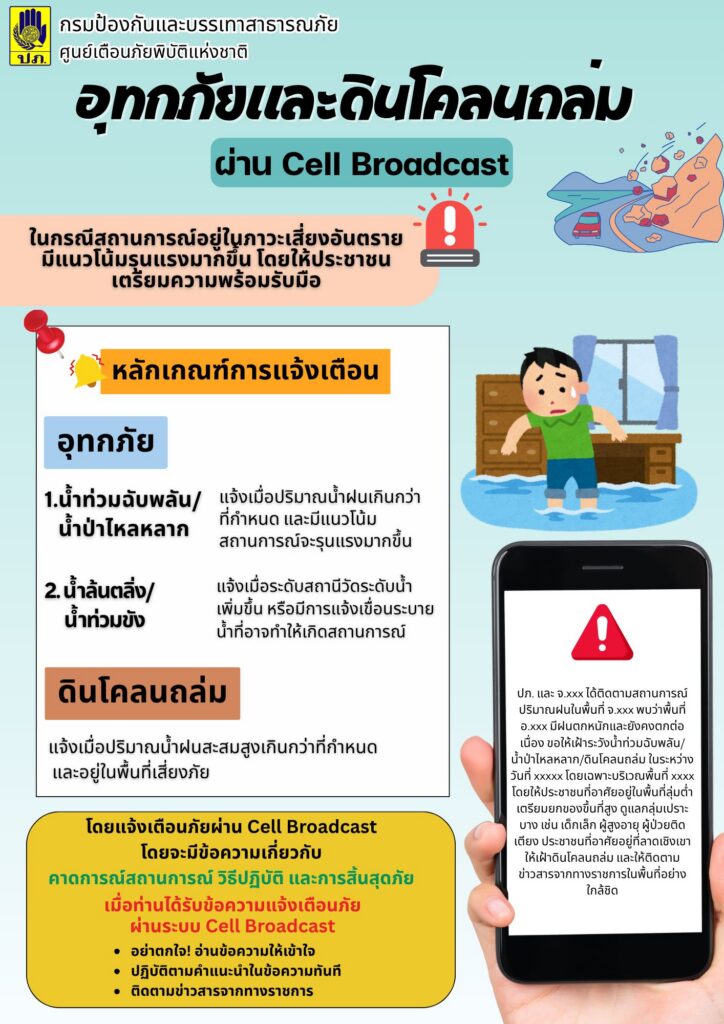 หากไม่พบข้อความ ให้ตรวจสอบการตั้งค่า “Cell Broadcast” บนโทรศัพท์ เพื่อไม่พลาดข้อมูลสำคัญในสถานการณ์ฉุกเฉิน