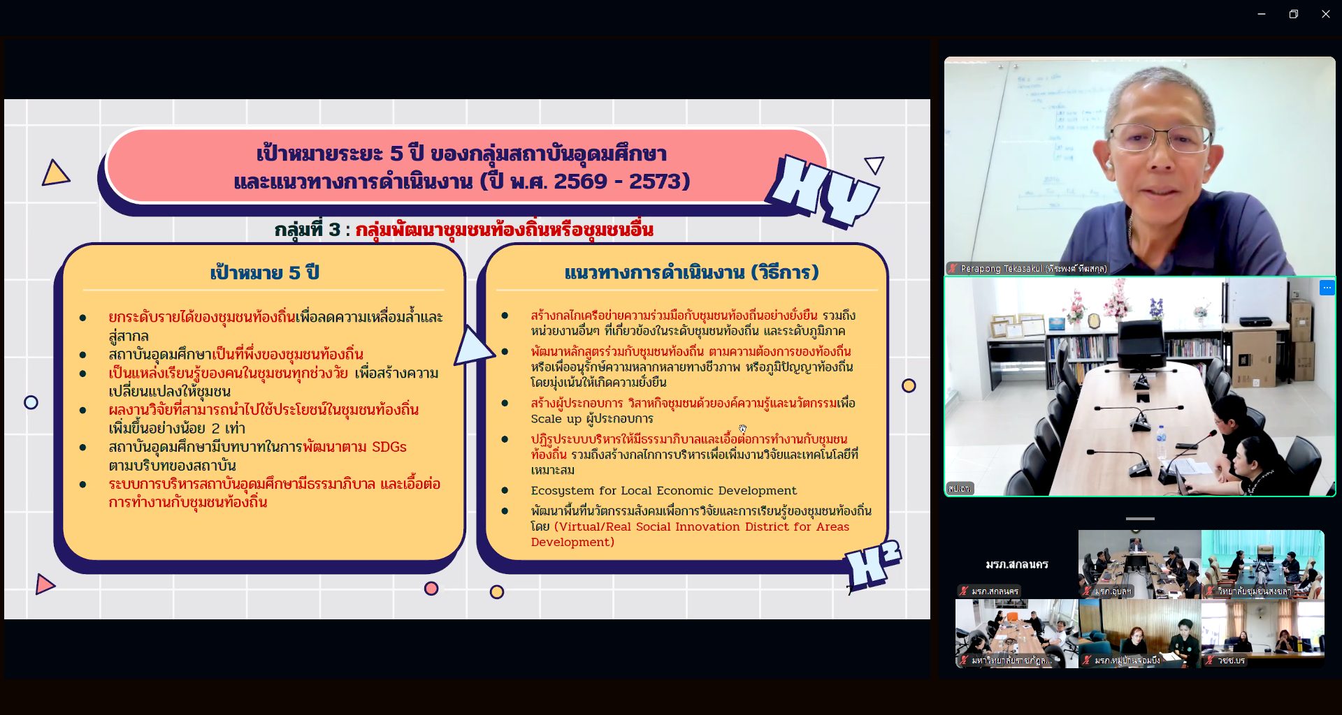 วันพุธที่ 5 พฤศจิกายน พ.ศ. 2568 เวลา 15.00 น. มหาวิทยาลัยราชภัฏสกลนคร นางอมรรัตน์ ตุ่นกลิ่น รักษาการในตำแหน่งผู้อำนวยการกองนโยบายและแผน พร้อมด้วย นางสาวอรอนงค์ ชูเดชวัฒนา หัวหน้างานยุทธศาสตร์และติดตามประเมินผล และ นายจักรกฤษ กองพิมาย นักวิเคราะห์นโยบายและแผนปฏิบัติการ เข้าร่วมประชุมชี้แจงแนวการจัดทำข้อเสนอแผนงานการพัฒนากำลังคนและการพัฒนาเชิงพื้นที่แบบองค์รวม โครงการพัฒนาความเป็นเลิศของสถาบันอุดมศึกษาและพัฒนากำลังคนขั้นสูง (Reinventing University) ของสถาบันอุดมศึกษากลุ่มพัฒนาชุมชนท้องถิ่นหรือชุมชนอื่น ประจำปีงบประมาณ พ.ศ. 2570 ณ ห้องประชุมกองนโยบายและแผน ชั้น 4 อาคาร 10 มหาวิทยาลัยราชภัฏสกลนคร จัดโดยสำนักงานปลัดกระทรวงการอุดมศึกษา วิทยาศาสตร์ วิจัยและนวัตกรรม วัตถุปรสงค์เพื่อชี้แจงแนวทางการจัดทำข้อเสนอแผนงานการพัฒนากำลังคนและการพัฒนาเชิงพื้นที่แบบองค์รวม โครงการพัฒนาความเป็นเลิศของสถาบันอุดมศึกษาและพัฒนากำลังคนขั้นสูง (Reinventing University) ของสถาบันอุดมศึกษากลุ่มพัฒนาชุมชนท้องถิ่นหรือชุมชนอื่น ประจำปีงบประมาณ พ.ศ. 2570 ฯลฯ