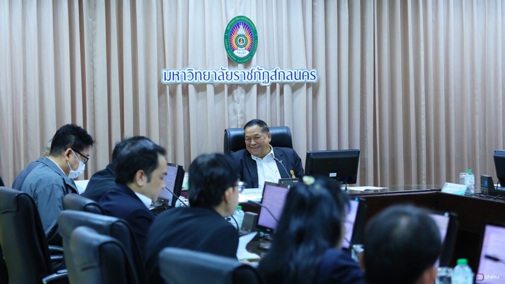 วันที่ 21 พฤศจิกายน 2568 ผศ.ชาคริต ชาญชิตปรีชา อธิการบดีมหาวิทยาลัยราชภัฏสกลนคร พร้อมด้วยคณะผู้บริหาร เข้าร่วมการประชุมคณะกรรมการบริหารมหาวิทยาลัยราชภัฏสกลนคร (กบ.) และ คณะกรรมการบริหารบุคคลในมหาวิทยาลัยราชภัฏสกลนคร (กบม.) ครั้งที่ 11/2568 ณ ห้องประชุมสรัสจันทร อาคาร 10 มหาวิทยาลัยราชภัฏสกลนคร