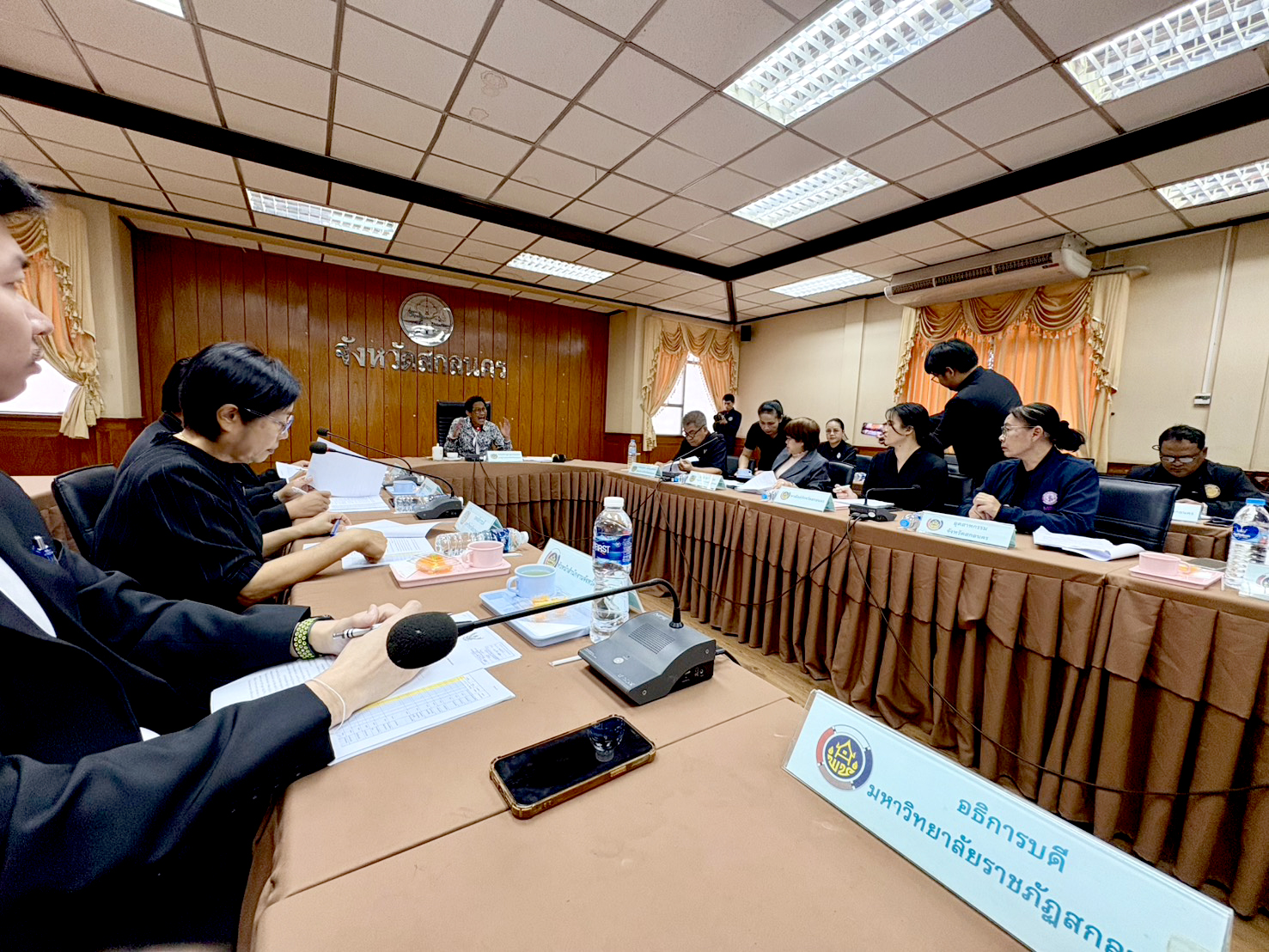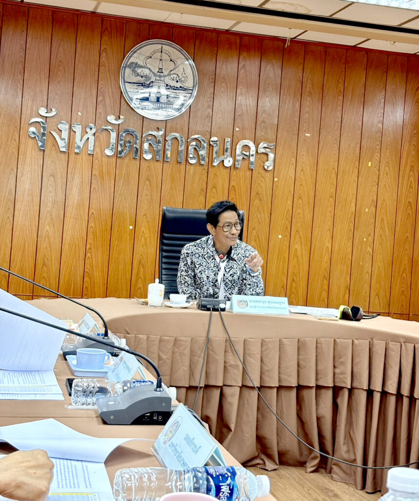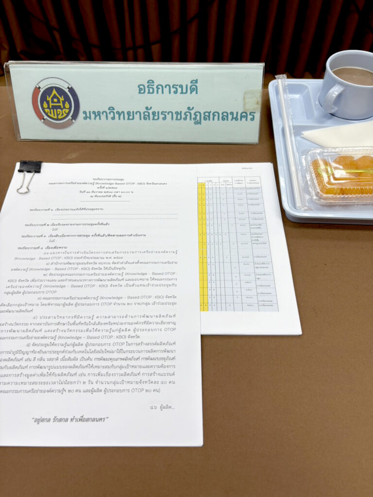 วันพฤหัสบดีที่ 11 ธันวาคม พ.ศ. 2568 เวลา 10.00 น. มหาวิทยาลัยราชภัฏสกลนคร โดย นางสาวเบญจพร มายูร นักวิเคราะห์นโยบายและแผนปฏิบัติการ ได้รับมอบหมายจาก ผู้ช่วยศาสตราจารย์ชาคริต ชาญชิตปรีชา อธิการบดี ให้เข้าร่วมประชุมคณะกรรมการเครือข่ายองค์ความรู้ (Knowledge-Based OTOP – KBO) ครั้งที่ 1/2569 ณ ห้องประชุมเทสรังสี ชั้น 2 ศาลากลางจังหวัดสกลนคร (หลังเก่า) โดย นายศราวุธ สุวรรณจูฑะ รองผู้ว่าราชการจังหวัดสกลนคร เป็นประธานการประชุม จัดโดย สำนักงานพัฒนาชุมชนจังหวัดสกลนคร (พช.) โดยมีวัตถุประสงค์เพื่อ 1. พิจารณาเห็นชอบการคัดเลือกผู้ผลิต ผู้ประกอบการ OTOP เข้าร่วมโครงการ จำนวน 20 กลุ่ม 2. จัดทำข้อมูลผลิตภัณฑ์ที่ยังไม่ได้รับ อย. เพื่อเป็นข้อมูลให้หน่วยงานที่เกี่ยวข้อง รวมถึงมหาวิทยาลัยได้ใช้องค์ความรู้และความเชี่ยวชาญเข้าไปสนับสนุน ฯลฯ