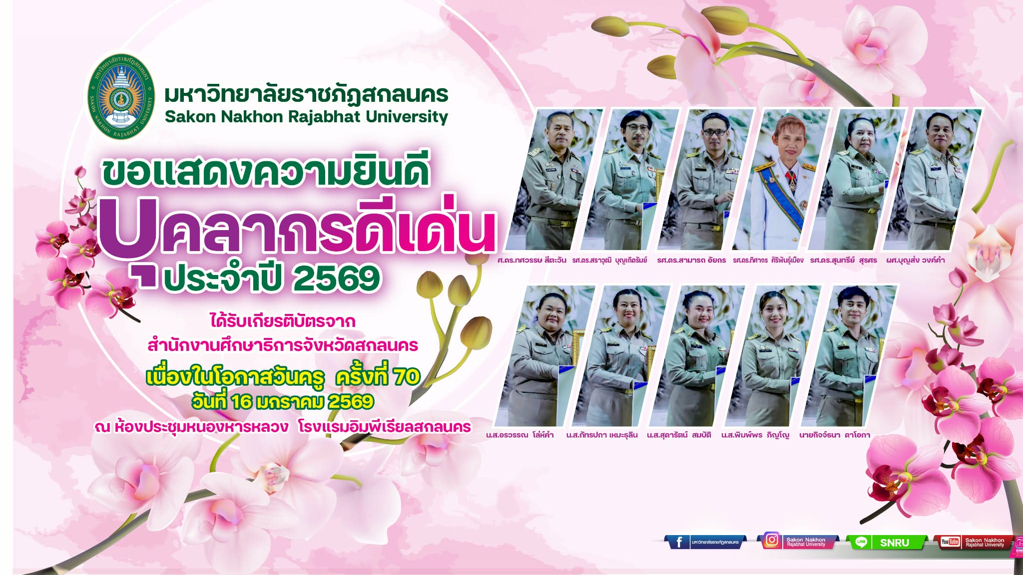 ที่ได้รับเกียรติบัตรจากสำนักงานศึกษาธิการจังหวัดสกลนคร เนื่องในโอกาสวันครู ครั้งที่ 70 วันที่ 16 มกราคม 2569 ณ ห้องประชุมหนองหารหลวง โรงแรมอิมพีเรียลสกลนคร