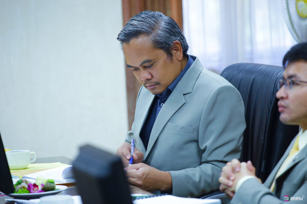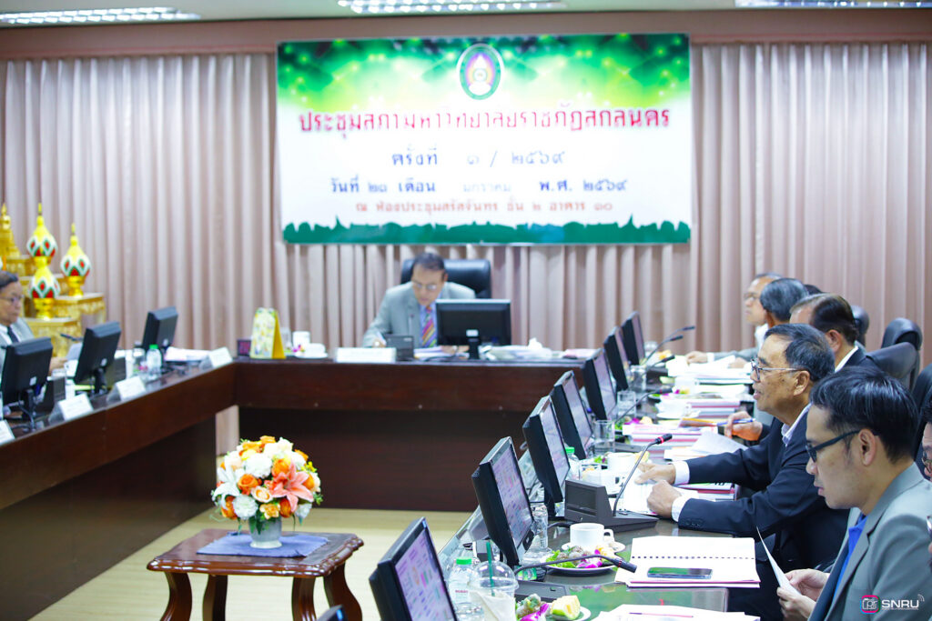 วันที่ 23 มกราคม 2569 นายเกษม บุตรดี ผู้อำนวยการสำนักงานอธิการบดี เข้าร่วมการประชุมสภามหาวิทยาลัยฯ ครั้งที่ 1/2569 โดยมี รศ.ดร.สมเจตน์ ภูศรี นายกสภามหาวิทยาลัยฯ เป็นประธานในการประชุม พร้อมด้วยคณะกรรมการผู้ทรงคุณวุฒิ และคณะกรรมการสภามหาวิทยาลัย เข้าร่วมประชุมเพื่อพิจารณาในวาระสำคัญต่างๆ ณ ห้องประชุมสรัสจันทร อาคาร 10 มหาวิทยาลัยราชภัฏสกลนคร