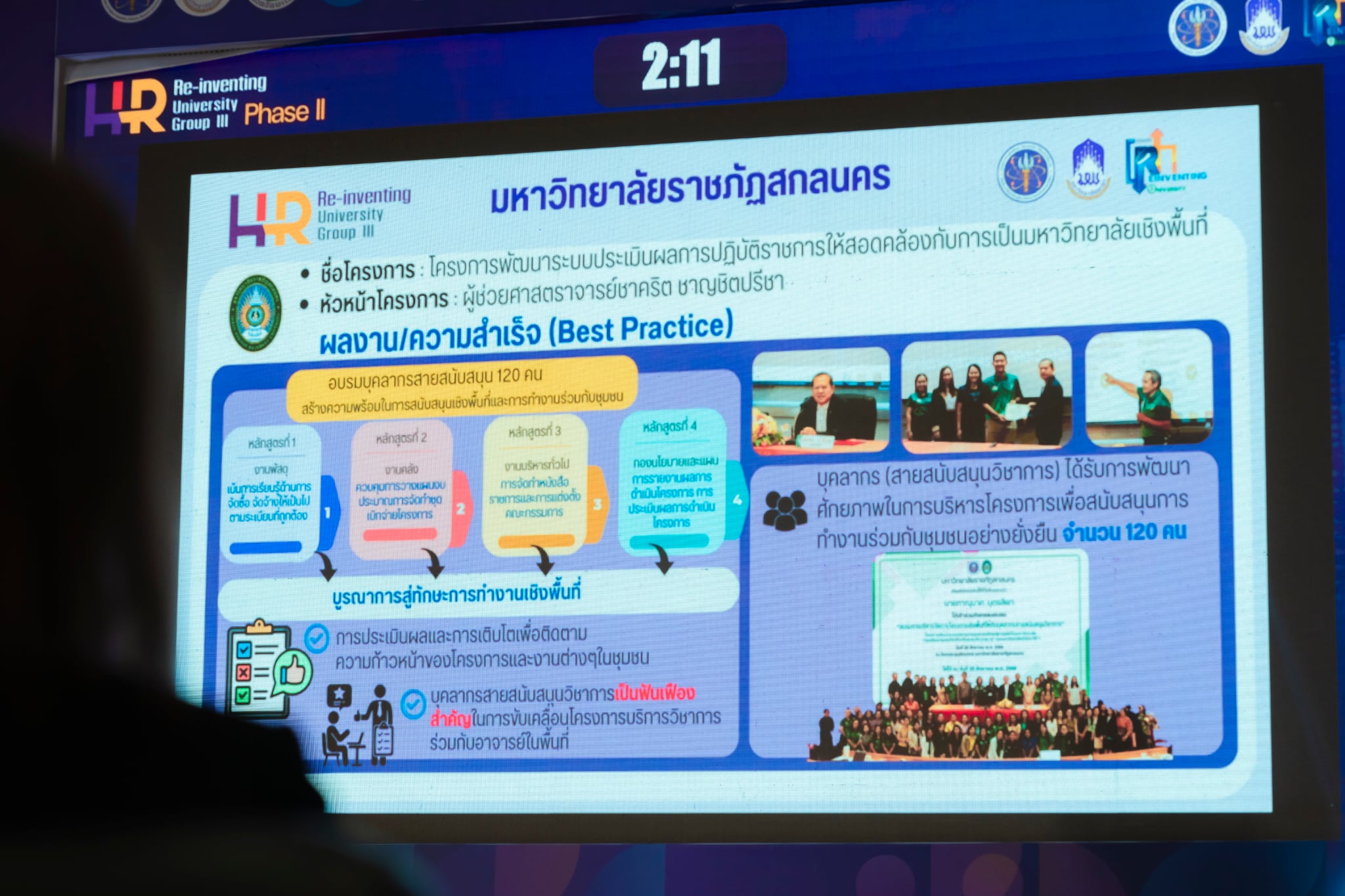 เมื่อวันอังคารที่ 27 มกราคม พ.ศ. 2569 มหาวิทยาลัยราชภัฏสกลนคร นำโดยนายเกษม บุตรดี ผู้อำนวยการสำนักงานอธิการบดี พร้อมด้วยผู้บริหารหัวหน้างาน และบุคลากรมหาวิทยาลัยราชภัฏสกลนครที่เกี่ยวข้อง เข้าร่วมนำเสนอผลการดำเนินงานโครงการพัฒนาระบบบริหารงานบุคลากรเชิงรุกสู่การพลิกโฉมมหาวิทยาลัย “กลุ่มพัฒนาชุมชนท้องถิ่นหรือชุมชนอื่น” (กลุ่ม 3) ปีที่ 1 (สถาบันนำร่อง) เพื่อปิดโครงการและร่วมแลกเปลี่ยนเรียนรู้ผลการดำเนินงานเพื่อค้นหาต้นแบบแนวปฏิบัติที่ดี ในแต่ละประเด็นการพลิกโฉมฯ ณ ห้อง UB 002 อาคาร 99 ปี พระอุบาลีคุณูปมาจารย์ (ปวง ธมฺมปญฺโญ) มหาวิทยาลัยพะเยา จังหวัดพะเยา