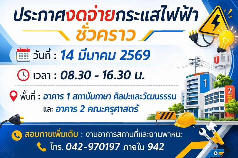 ประกาศงดจ่ายกระแสไฟฟ้า เผยเเพร่เมื่อ มีนาคม 14, 2569มีนาคม 16, 2026 โดย มัลลิกาล์ สินธุระวิทย์ 13 เข้าชม FacebookFacebookXXLINELineShare this: Share on X (Opens in new window) X Share on Facebook (Opens in new window) Facebook Related