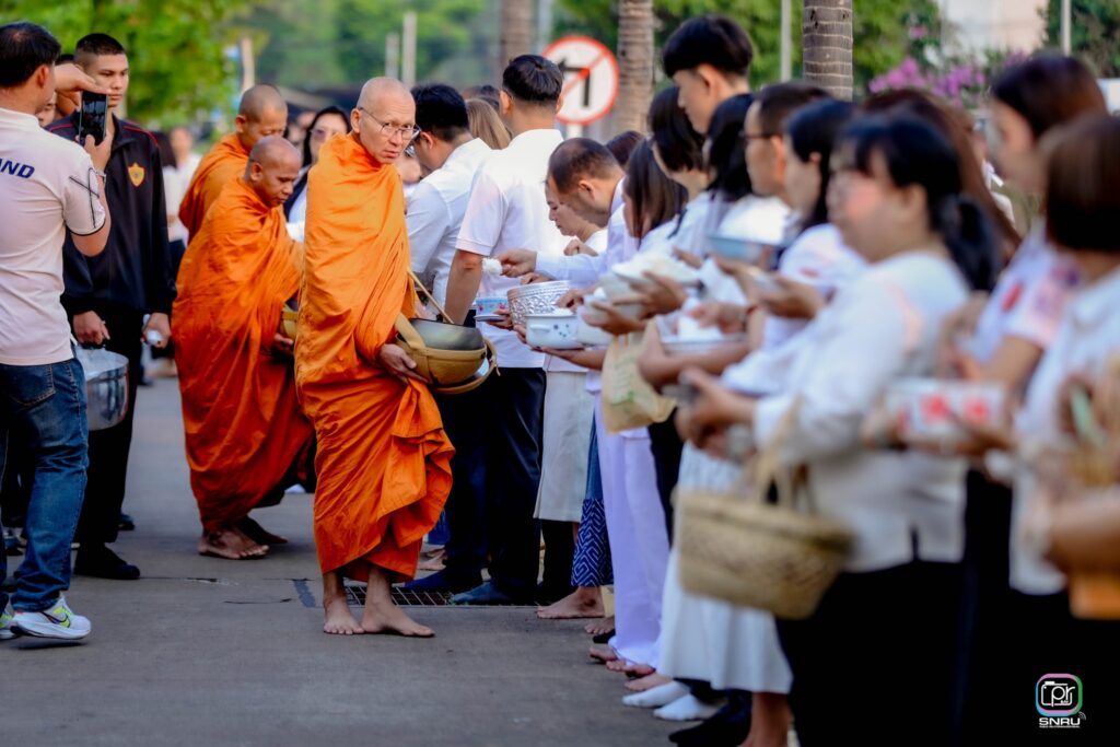วันจันทร์ที่ 23 มีนาคม 2569 เวลา 07.00 น. นายเกษม บุตรดี ผู้อำนวยการสำนักงานอธิการบดี เป็นตัวแทนมหาวิทยาลัยพร้อมด้วยบุคลากรสำนักงานอธิการบดีเข้าร่วมทำบุญตักบาตรในโครงการร้อยใจไทย สืบสานราชธรรม ทั้งแผ่นดิน ณ ห้องภูริทัตโต ชั้น 9 อาคารอุบัติเหตุฉุกเฉินและผู้ป่วยนอก โรงพยาบาลสกลนคร เพื่อถวายเป็นพระราชกุศลแด่สมเด็จพระนางเจ้าสิริกิติ์ พระบรมราชินีนาถ พระบรมราชชนนีพันปีหลวง