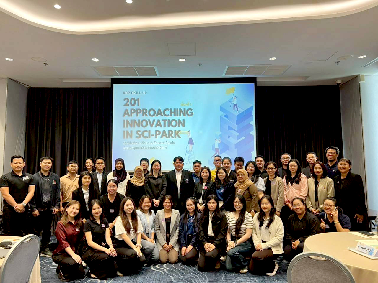 วันที่ 23 – 25 มีนาคม พ.ศ. 2569 บุคลากรกองนโยบายและแผน ได้แก่ 1. นายจักรกฤษ กองพิมาย นักวิเคราะห์นโยบายและแผนปฏิบัติการ 2. นางสาวอังศุมา สุทธิอาจ เจ้าหน้าที่จ้างเหมาโครงการคลินิกเทคโนโลยี และ 3. นางสาวจันทร์จิรา แกะทาคำ เจ้าหน้าที่จ้างเหมาโครงการ SROI ในนามมหาวิทยาลัยราชภัฏสกลนคร เข้าร่วม “กิจกรรมพัฒนาทักษะและศักยภาพเบื้องต้นบุคลากรอุทยานวิทยาศาสตร์ภูมิภาค ประจำปีงบประมาณ 2569” หลักสูตร 201 Approaching Innovation in Sci-Parks (RSP Skill 201) โดยมีวัตถุประสงค์เพื่อพัฒนาศักยภาพบุคลากรของอุทยานวิทยาศาศาสตร์ให้มีความสามารถในการประยุกต์ใช้ความรู้ด้านนวัตกรรม ทรัพย์สินทางปัญญา และห่วงโช่คุณค่าอุทยานวิทยาศาสตร์ เพื่อผลักดันการถ่ายทอดเทคโนโลยีและการสร้างมูลค่าเชิงเศรษฐกิจและสังคมอย่างเป็นระบบ ณ โรงแรมไอบิส สไตล์ กรุงเทพ รัชดา จัดโดย อุทยานวิทยาศาสตร์ภูมิภาค ภาคเหนือ สำนักงานปลัดกระทรวงอุดมศึกษา วิทยาศาสตร์ วิจัยและนวัตกรรม (สป.อว.)