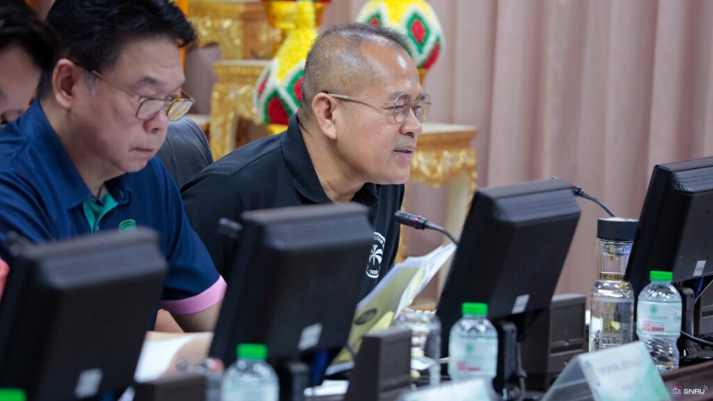 วันที่ 23 เมษายน 2569 นายเกษม บุตรดี ผู้อำนวยการสำนักงานอธิการบดี เข้าร่วมการประชุมคณะกรรมการบริหารมหาวิทยาลัยราชภัฏสกลนคร (กบ.) และ คณะกรรมการบริหารบุคคลในมหาวิทยาลัยราชภัฏสกลนคร (กบม.) ครั้งที่ 4/2569 โดยผศ.ชาคริต ชาญชิตปรีชา อธิการบดีมหาวิทยาลัยราชภัฏสกลนคร เป็นประธานในที่ประชุม พร้อมด้วยคณะผู้บริหาร ณ ห้องประชุมสรัสจันทร อาคาร 10 มหาวิทยาลัยราชภัฏสกลนคร
