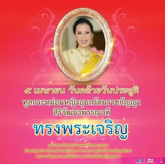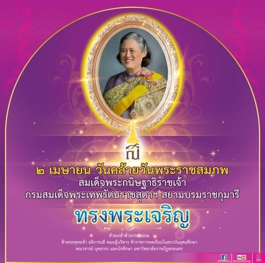 ๒ เมษายน ๒๕๖๙ วันคล้ายวันพระราชสมภพ สมเด็จพระกนิษฐาธิราชเจ้า กรมสมเด็จพระเทพรัตนราชสุดาฯ สยามบรมราชกุมารี